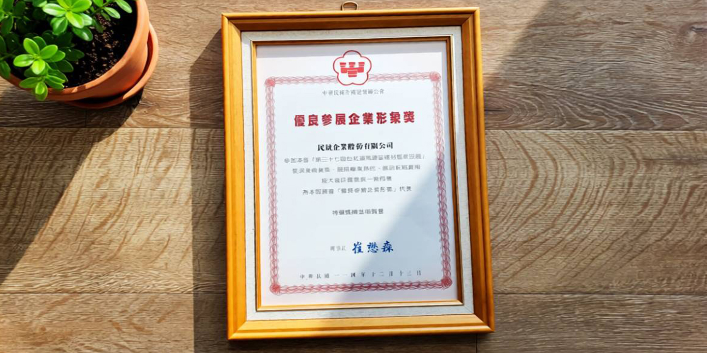 民景企業以產品創新與實用、裝潢及整體感受、專業解說三項全能表現,勇奪第37屆建材展「優良企業形象獎」。